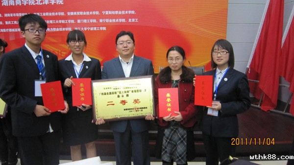 11月3日至4日,全国高校第四届市场营销大赛总决赛在湖南商学院北津学院举行。由我校经济管理学院刘勤侠、方升老师指导,营销09-2班夏飞跃、鹿彩云、简永蓉三位同学组成的参赛队, 经过软件对抗赛、营销策划文案评比和现场答辩环节的激烈角逐,在来自全国149所大学的157个参赛队中脱颖而出,总成绩排名第30位,荣获二等奖。