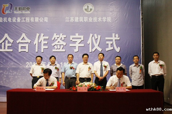 5月11日下午,我校与江苏天勤机电设备工程有限公司校企合作签约仪式在中汇国际酒店隆重举行。我校党委书记袁洪志、副院长张登宏,天勤机电设备工程公司总经理王雪峰、副总经理王雪兵以及我校建筑设备工程学院党政领导、相关职能部门负责人和相关行业、企业、媒体代表出席了签约仪式。