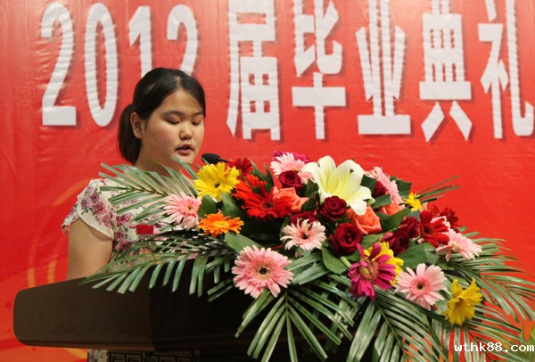 优秀毕业生代表信息电子工程学院网络09-1班张静同学、在校生代表建筑装饰艺术学院动画11-2班胡丰驿同学发言分别代表毕业生、在校生发言。