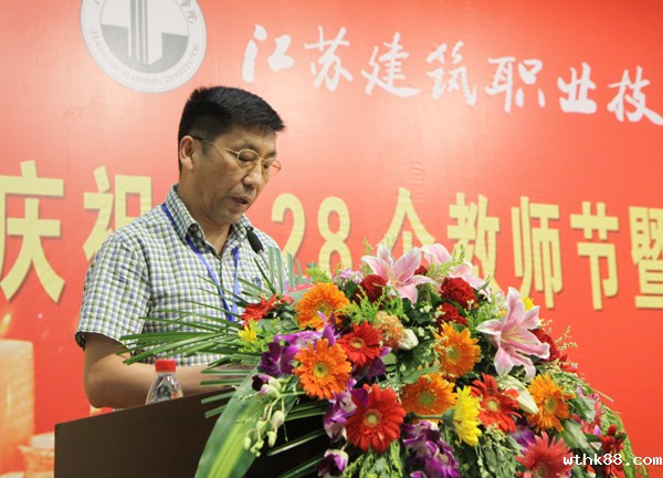 随后,吴光林发表重要讲话。他首先代表校党委、校行政,向辛勤工作在学校各个岗位上的广大教职员工和老领导、老教师致以诚挚的问候!向各位新教师选择江苏建院表示热烈的欢迎!向各位受到表彰的老师和同志们表示热烈的祝贺!