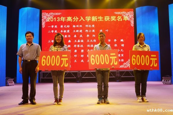 晚会现场举行了2013级新生高分奖励颁奖仪式,院长吴光林为荣获高分奖励一等奖的3名同学颁发每人6000元奖金,副院长季翔为荣获高分奖励二等奖的7名同学颁发每人4000元奖金。