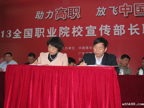 会上,党委副书记张登宏代表学校与佛山市南海区人社局签订了人才输送合作协议,betway体育官方网站首页处副处长田广代表学校接受了就业竞争力示范校奖牌。在20日晚召开的联席会主席团会上,宣传部部长方桐清接受了由团中央新闻中心主任、中国青年报编委、新闻部主任黄勇颁发给我校的主席团单位牌匾。