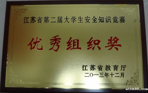 近日,从省教育厅传来喜讯,我校荣获江苏省第二届大学生安全知识竞赛优秀组织奖。今年9月至12月,省教育厅在全省高校举办了大学生安全知识学习和竞赛活动,为进一步加强大学生安全教育,普及安全知识,同时也为了提高大学生安全防范意识和自护自救能力,我校积极组织2013级学生参加活动。活动期间专门邀请有关专家举行安全和法制教育知识讲座,保卫处、学工处和各二级学院还结合实际开展了大学生喜闻乐见的系列安全和法制教育活动,取得了良好的成效。