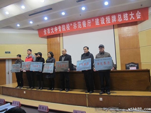 会议对徐州市13家高校(中专)餐饮服务食品安全“示范餐厅”进行了表彰,我校学生第一食堂、第三食堂获得 “示范餐厅”荣誉称号。泉山区、邳州市食品药品监管局、中国矿业大学及我校交流分享各自示范餐厅创建成功经验。
