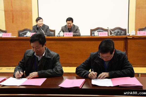 院长吴光林代表学校与有关职能部门、二级学院负责人代表签订2014年就业、招生工作、招生宣传工作责任书。