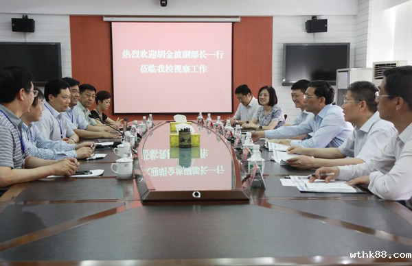 吴光林代表学校党委和行政对胡金波副部长一行来校视察指导工作表示热烈欢迎,感谢胡金波副部长和省委组织部、省教育厅有关部门长期以来对我校事业发展的关心和帮助。吴光林简要汇报了学校发展概况与办学实力,并从提升内部治理能力、加强师资队伍有序培养、提高科技服务能力、服务学生全面发展、近期推进的几项重点工作等方面介绍了学校加强内涵建设的若干举措。