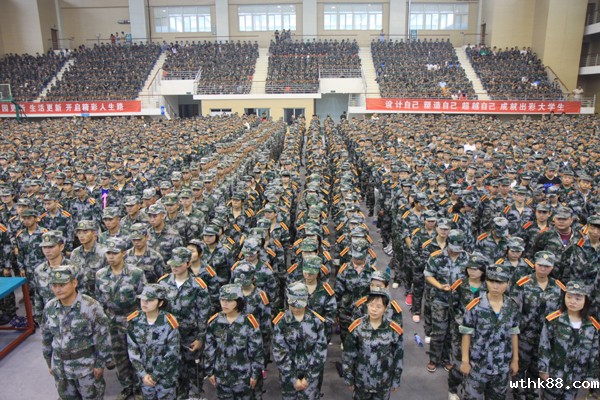 由于天气原因,上午9时学校召开的动员大会临时改在体育馆举行。党委书记吴光林、承训部队副政委陈志钢、校军校领导小组组长副院长任留钦,以及领导小组全体成员、军训教官、专兼职辅导员等参加了军训动员大会。吴光林书记向承训部队授了军训团旗帜。大会由学校武装部副部长胡永主持。