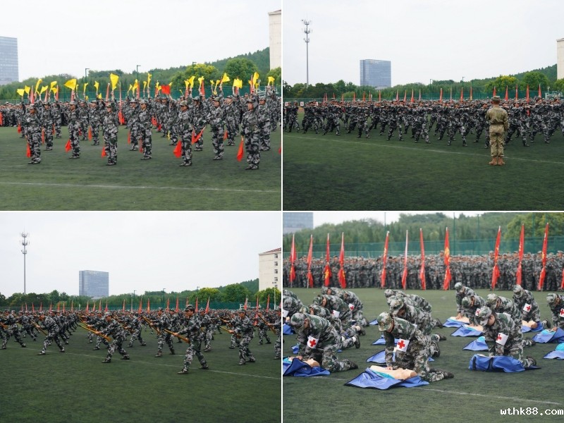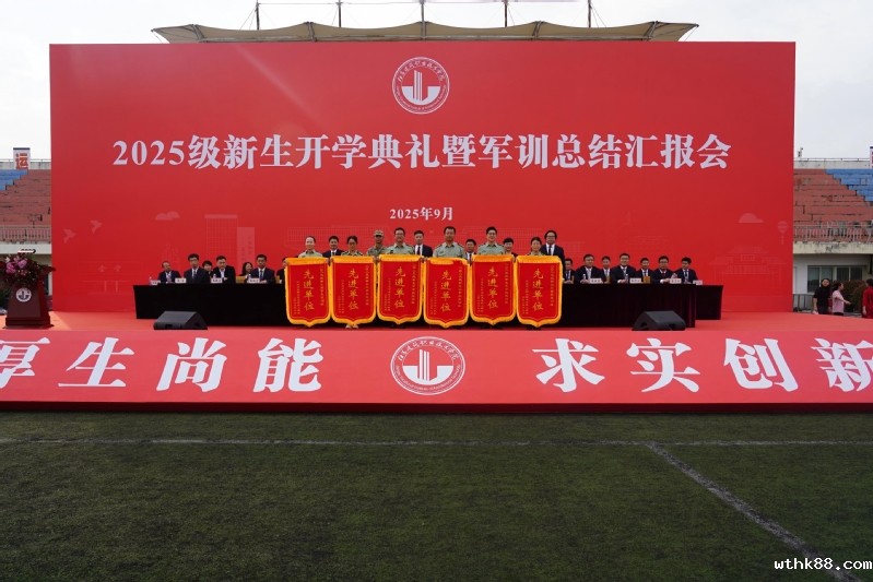 典礼在师生合唱《铭记》的歌声中拉开序幕。随后,现场举行了庄严的升国旗仪式。军训汇报展示环节,各新生方队代表依次进行了人海拼图、旗语展示、队列会操、心肺复苏与战场急救包扎等训练科目演示,充分展现了2025级新生良好的精神风貌和军训成果。